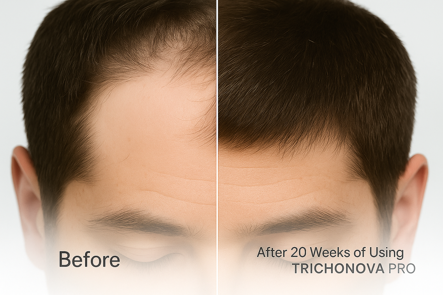 Experience the visible difference as TrichoNova Pro reawakens dormant follicles and boosts natural regrowth with gentle, medical-grade infrared light.
