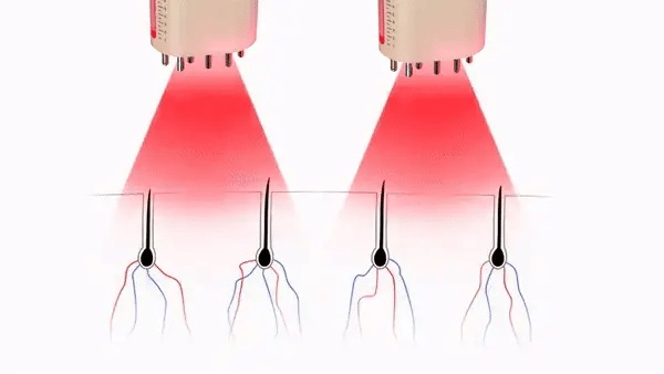 Uses FDA-cleared infrared laser therapy to restore cellular energy (ATP) and reactivate dormant follicles for natural regrowth.